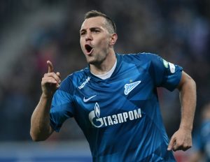 Игрок «Зенита» Артем Дзюба радуется забитому мячу в матче 10-го тура чемпионата России по футболу среди клубов Премьер-лиги между командами ФК «Зенит» (Санкт-Петербург) и ФК «Рубин» (Казань). Алексей Даничев / РИА Новости